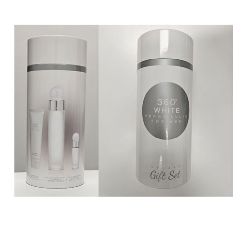 SET PERRY ELLIS 360 WHITE MEN ( 3 PC ) 3.4 OZ EDT /3.0 OZ GEL + MINI -CANISTER